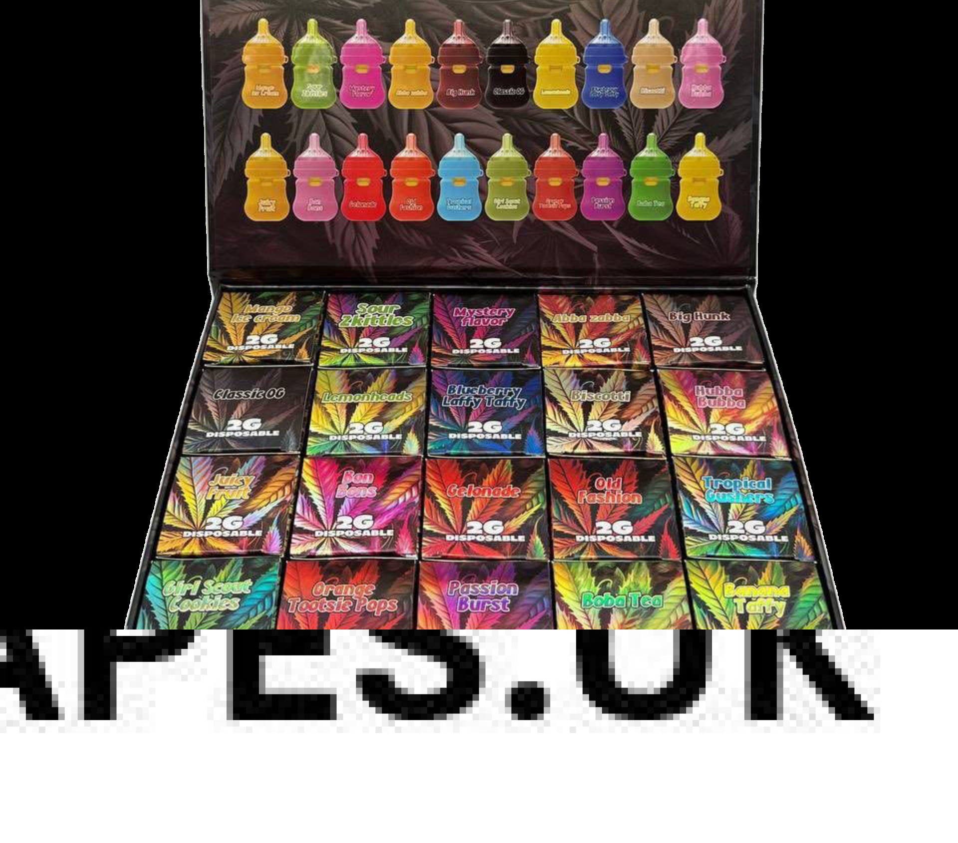 | FLAVORS | Top Mixed, Mango Rita, Tropical Rainbow, Passion Fruit, Papaya, Peach Cobbler, Sour Apple, Strawberry Lemonade, Banana Dream, Watermelon Freeze, Blueberry Sour Diesel, Purple Punch, Sherblato, Cry Baby OG |