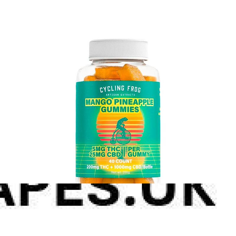 Cycling Frog, 5mg THC + 25mg CBD Gummies, Mango-Pineapple, Full Spectrum, 40ct, 200mg THC + 1000mg CBD